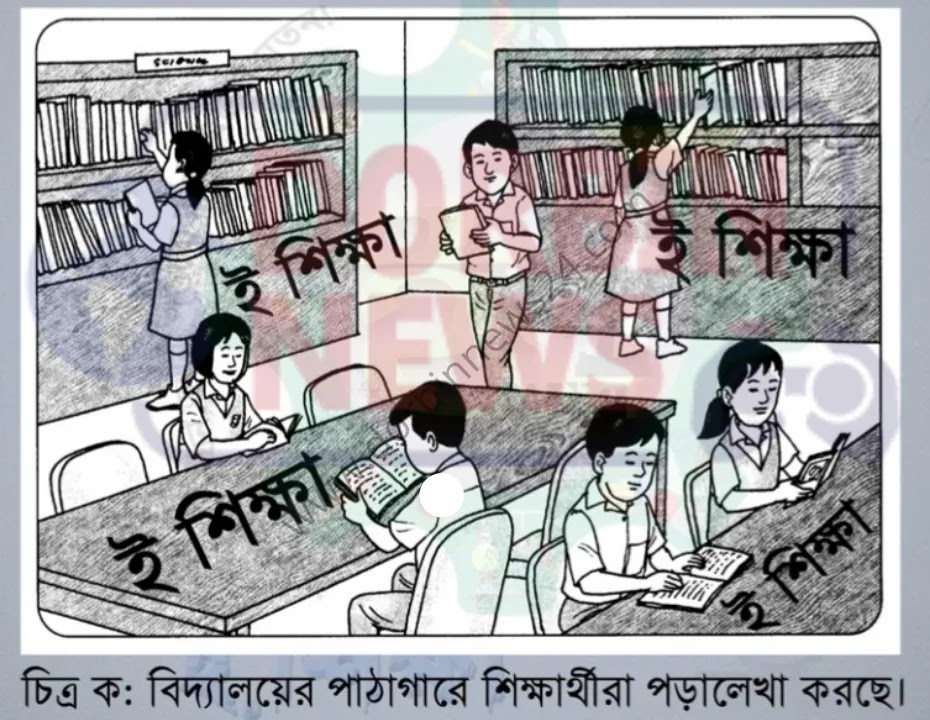 - ক. বিদ্যালয়ের পাঠাগারে শিক্ষার্থীরা পড়ালেখা করছে।