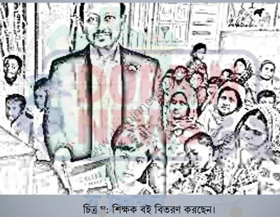 - ঘ. শিক্ষক বই বিতরণ করছেন।